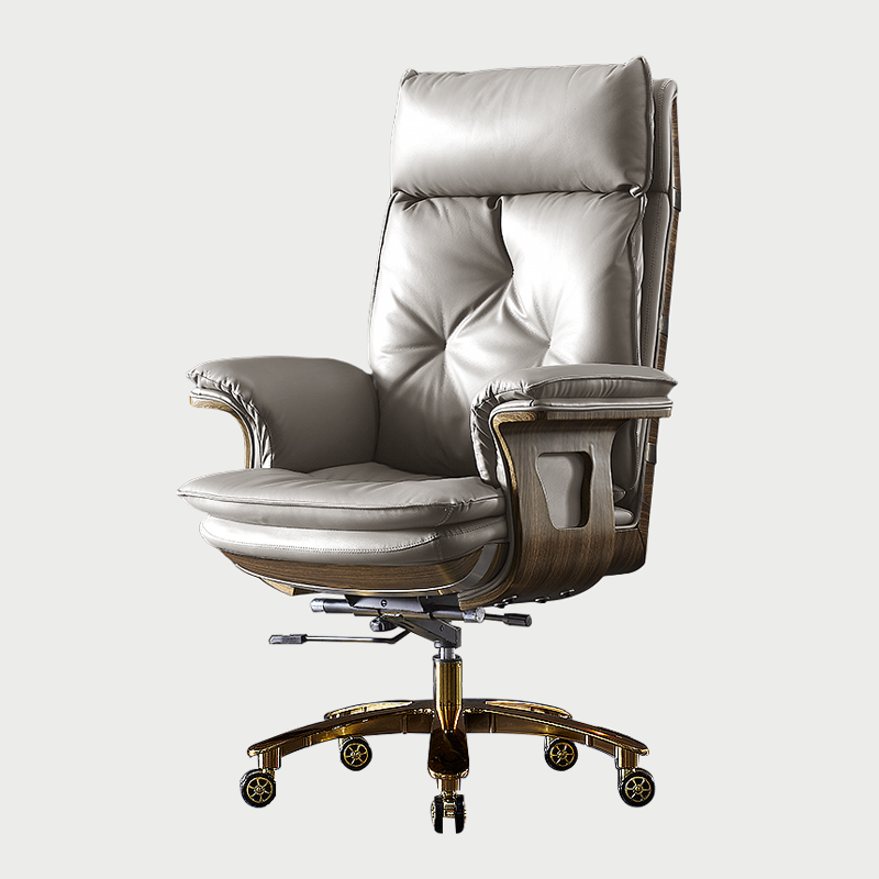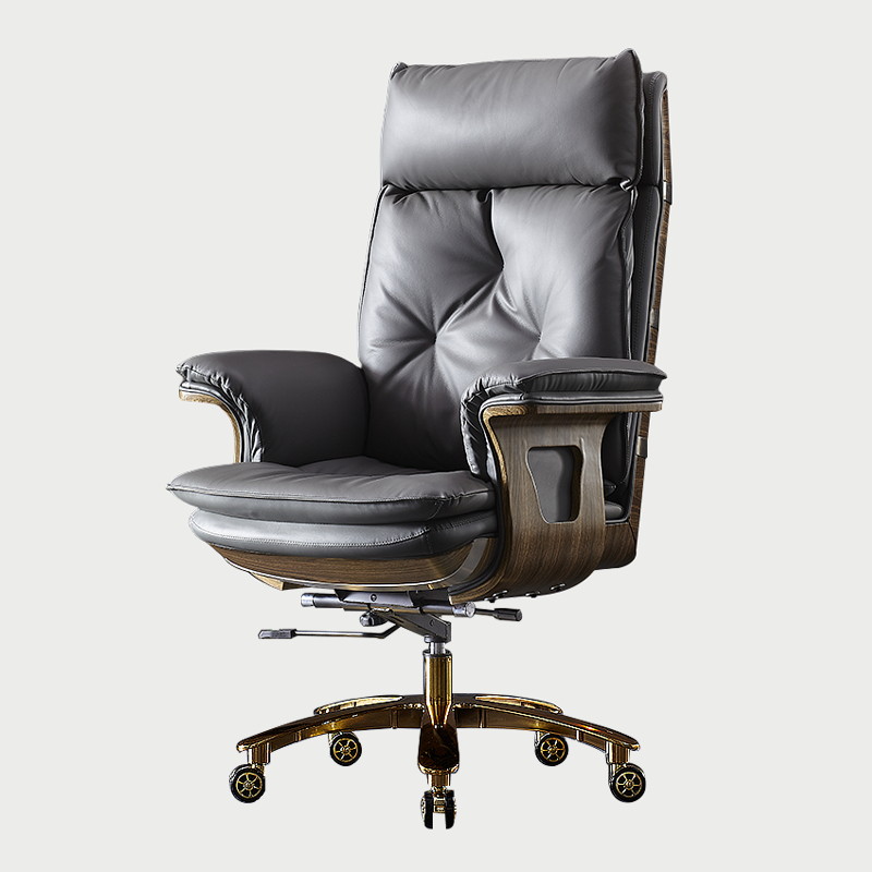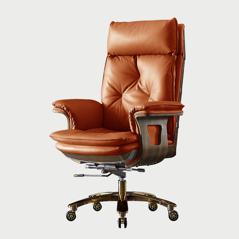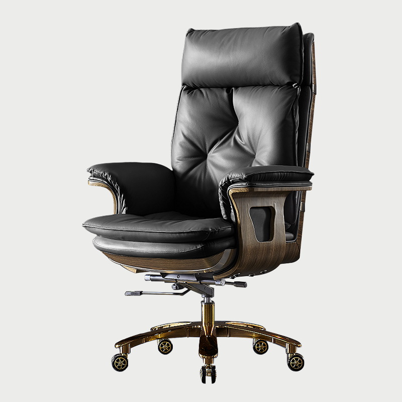 Born from a design studio devoted to craftsmanship, this chair is the result of months of meticulous refinement. Every curve and detail was crafted with one goal: to unite visual elegance with lasting comfort.Crafted with meticulous care, this chair blends elegance and lasting comfort. Upholstered in premium full-grain leather, it feels soft yet durable. The solid wood backrest, shaped through expert processes, pairs warm tradition with modern design and offers gentle, firm support with breathable tufting.Its ergonomic, double-layered seat follows your body’s curves for all-day comfort. A smooth adjustment system lets you easily control height and tilt from 90° to 120°, shifting effortlessly between focus and relaxation.More than a chair, it’s a lifestyle statement—where beauty meets function to make work a pleasure.