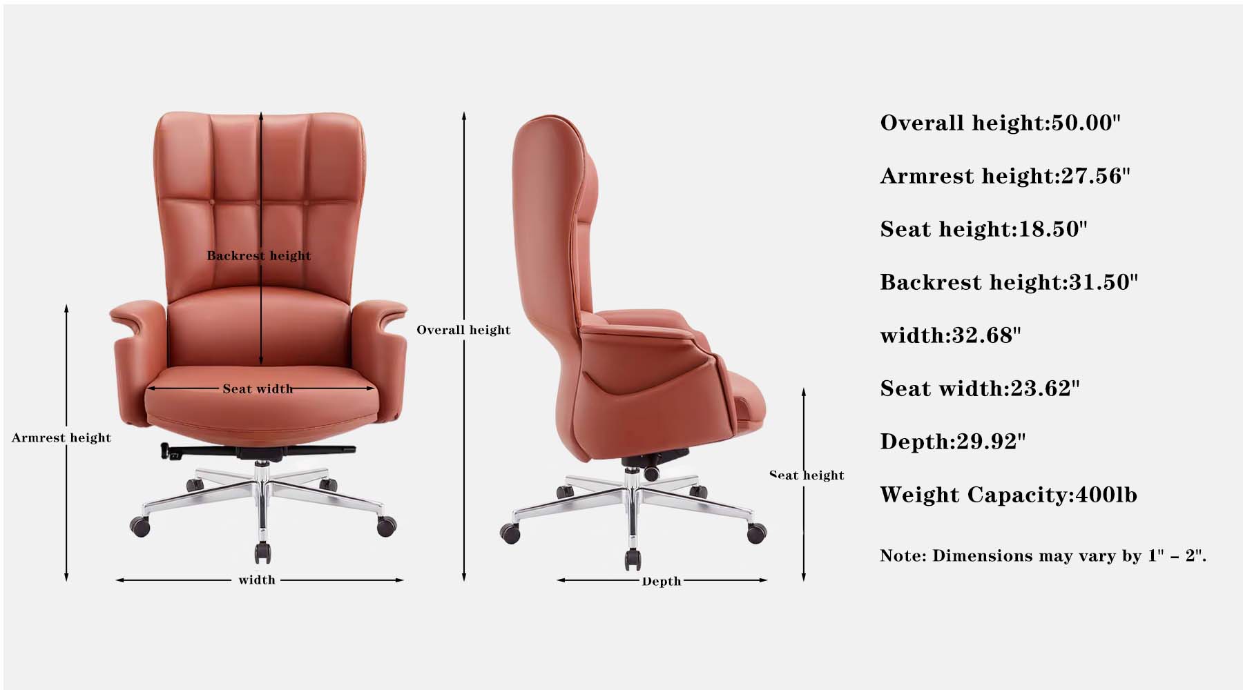 Avoid placing the chair in direct sunlight for extended periods, as this may cause fading or drying of the leather surface.Keep sharp objects away to prevent scratches or tears on the upholstery.Use the chair on flat surfaces to maintain wheel and base integrity. - Cleaning Instructions