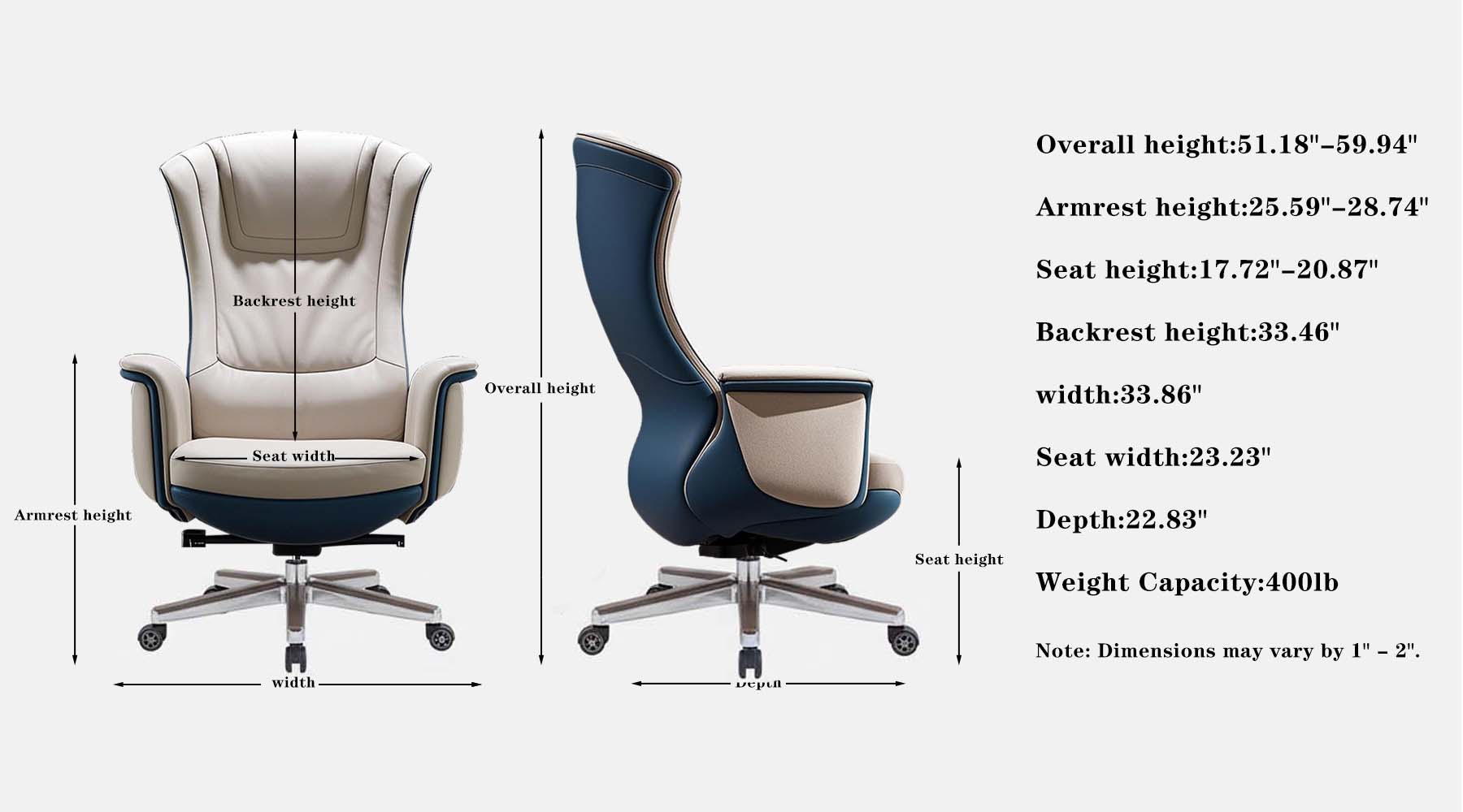 - Weight Capacity: The chair is designed to support up to 400lbs. Please avoid standing or placing heavy items on the chair.