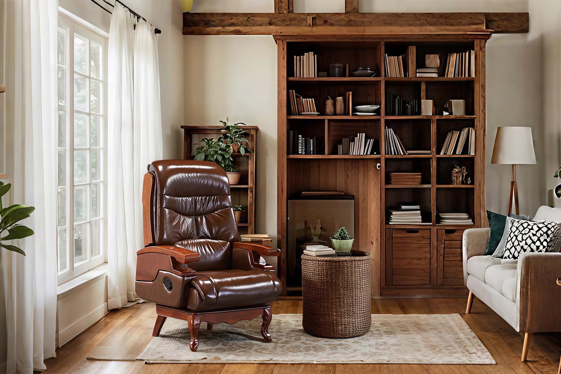 A sculpted lumbar zone to follow the body’s natural line.From 90° to 135°, the chair flows with you —from getting things done to letting go.The solid wood base is hand-carved, a nod to timeless craftsmanship.The deep-toned leather matures with grace — just like you.Every detail exists for one purpose:To give you a place to pause — and feel at peace.This isn’t just a chair.